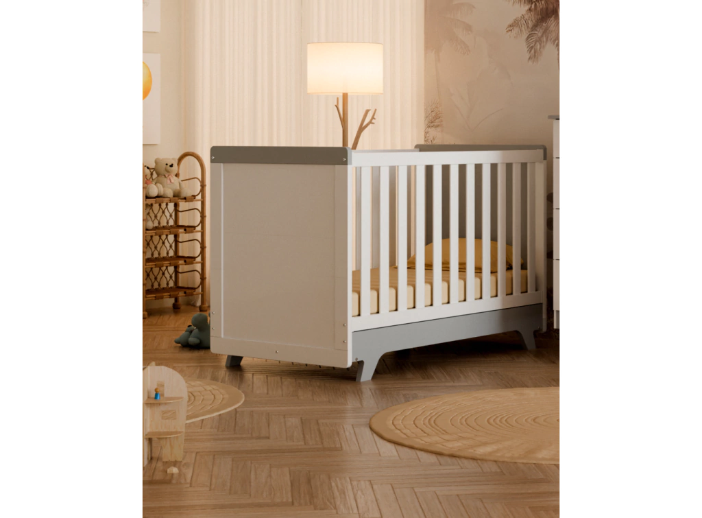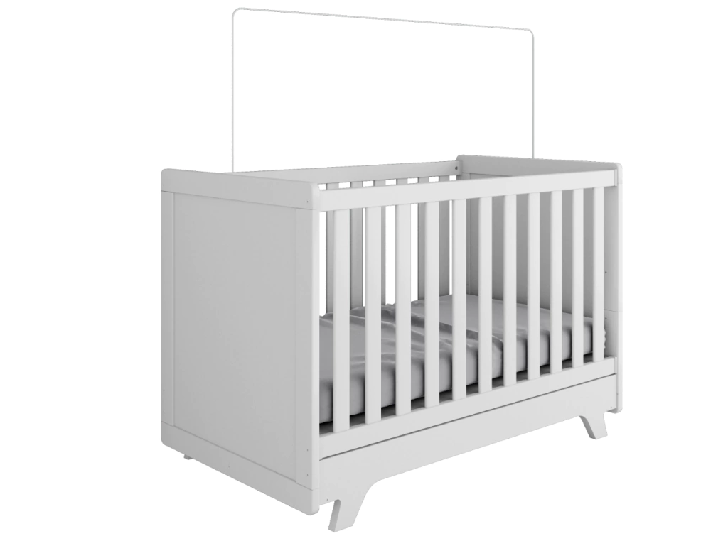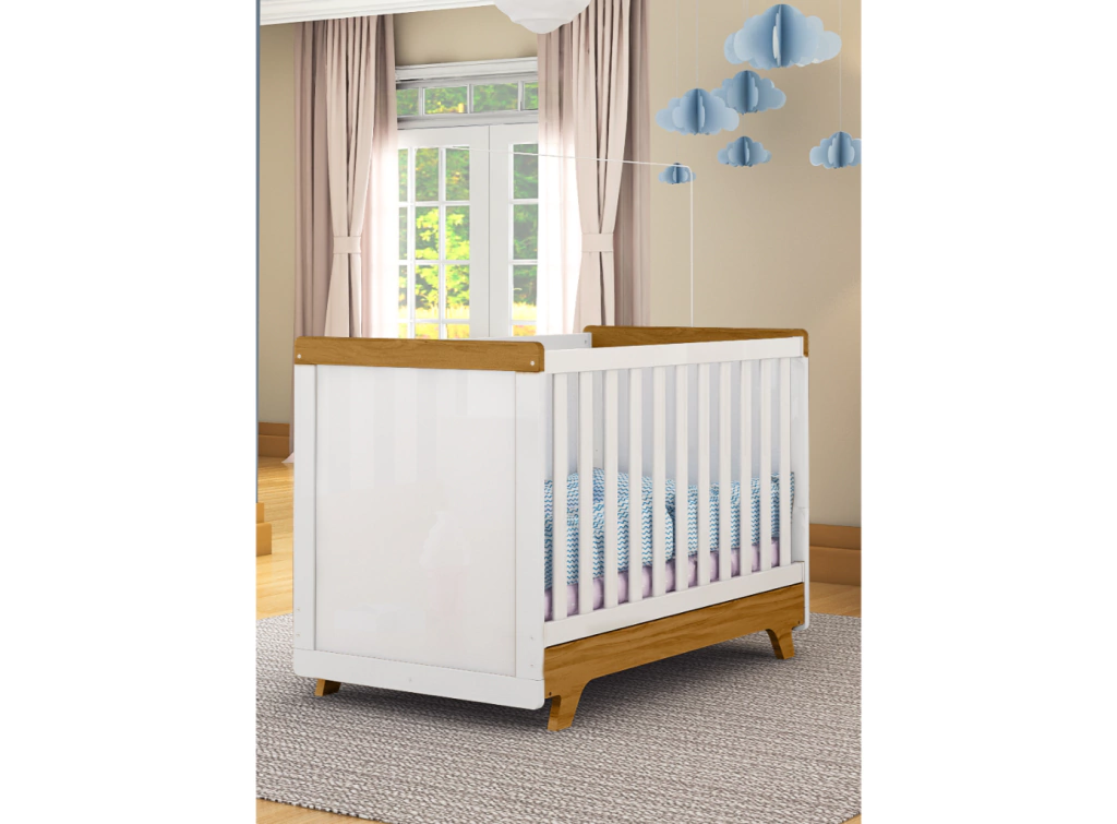O Berço Retrô é um produto padrão americano, fabricado 100% em MDF e possui pintura atóxica. Seu estrado possui altura regulável e é fabricado em MDF e madeira/laminado de madeira. As grades são fabricadas em chapas de 25 e 12 mm. Seus pés são usinados em uma peça única de MDF 25 mm. O quadro das cabeceiras é também em chapa de 25 mm. Possui bordas arredondadas e laqueadas, proporcionando maior segurança e uma sensação agradável ao toque. Acompanha suporte de cortinado e possui a opção de transformação em minicama.