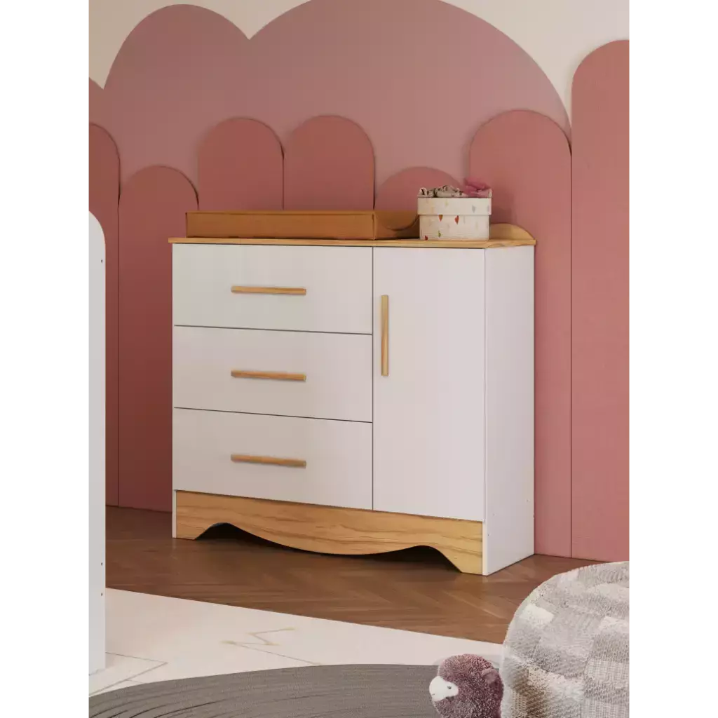 A Cômoda Clara 1 Porta Plus é um produto 100% MDF e possui pintura atóxica. Sua estrutura é fabricada em chapa de 12 mm, sendo seu tampo superior em chapa de 15 mm. Possui puxadores em MDF revestido com papel melamínico e gavetas com corrediças telescópicas.